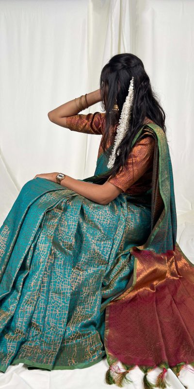 Classic Teal Color Kanchi Weaves Zari Weaving Work Saree
