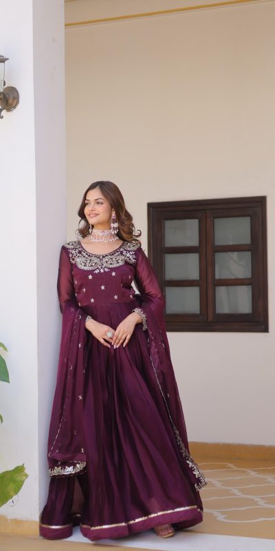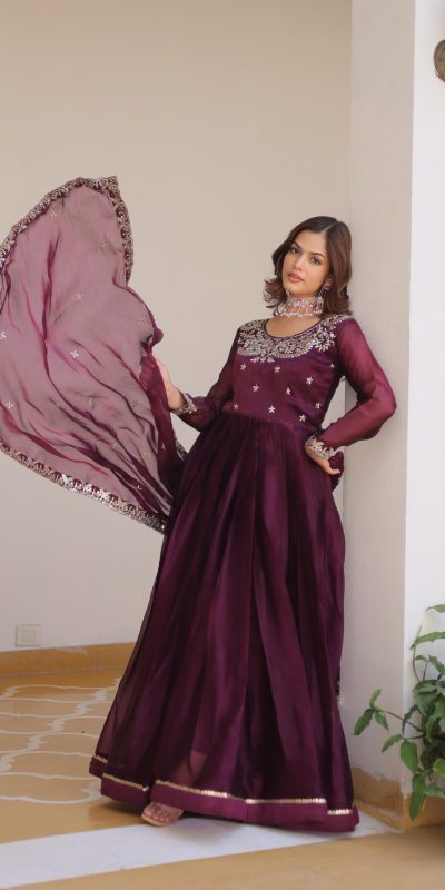 Ram 092 Wine Color Burberry Silk Sequence Work Readmit Less Gown Casual, Wedding, Festive, Events . Expected Delivery 4-6 Working Days @2149/- only