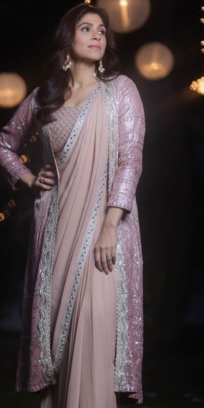 Commitment Peach or Lite Pink Color Embroidery Work Saree With Koti