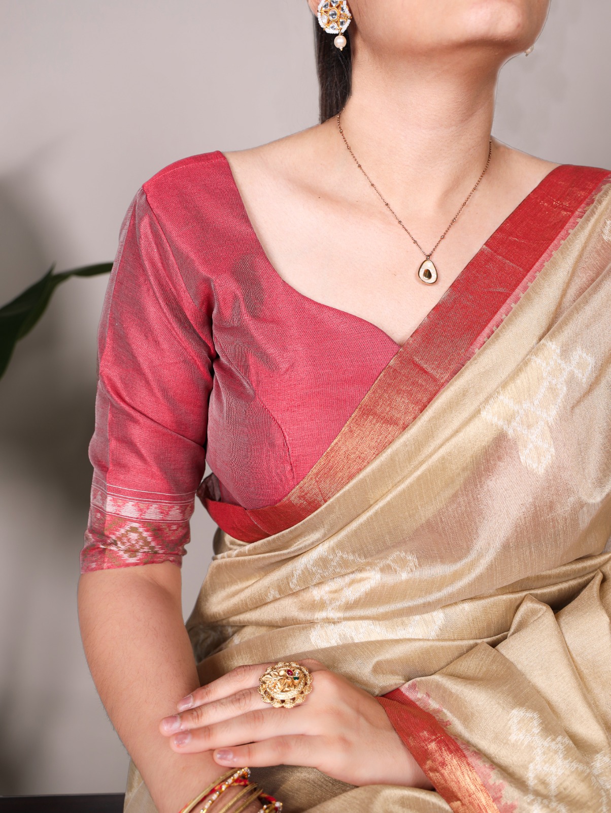 Blouse work : Plain With Zari Weaving Work