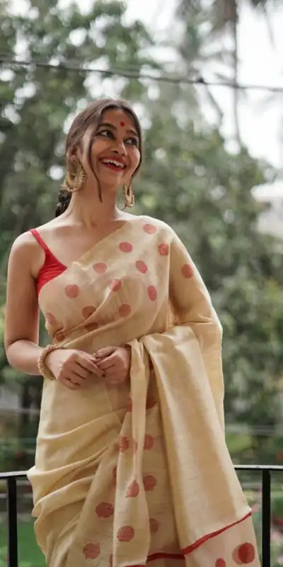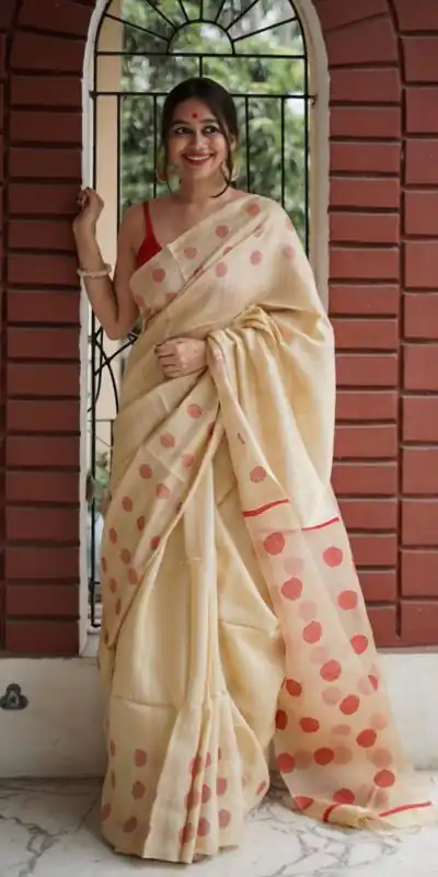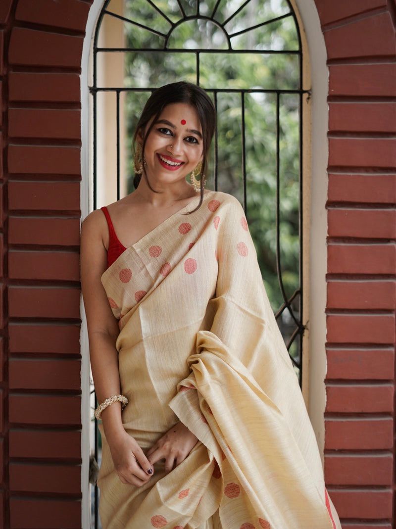Cream Soft Lilan Weaving Work Saree