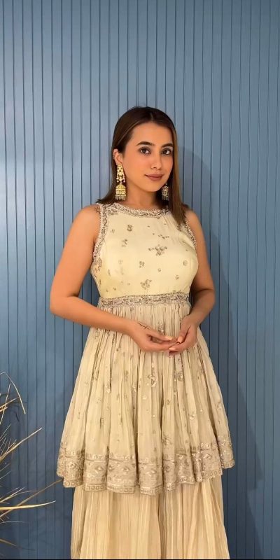 SSR 483 Cream Color Georgette Embroidery Sequence Salwar Suit Wedding, Party, Festive, Events Expected Delivery 4-6 Working Days @ 2049/-