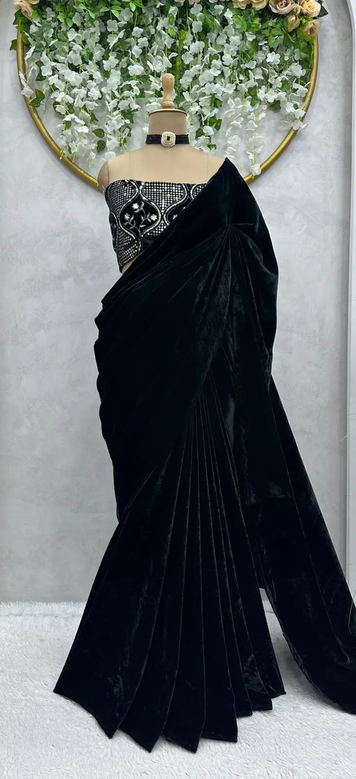 Dreamy Black Color Heavy Velvet with Lace work. Sequence Designer Saree