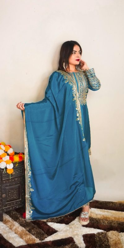 SRK 5151 Blue Color Pure Chinnon Silk Embroidery Sequence Salwar Suit Wedding, Party, Festive, Events Expected Delivery 4-6 Working Days @ 1949/-