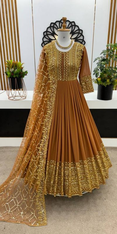 ZSR 3059 Mustard Color Georgette Embroidery Sequence Work Gown Casual, Wedding, Party, Festive, Events Etc. Expected Delivery 4-6 Working Days 2049/-