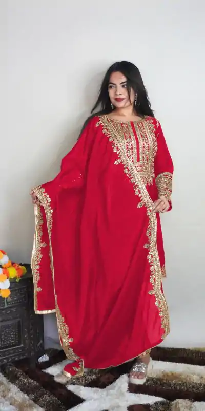 | Fabrics | Top :::Pure Chinnon Silk Work : Heavy Embroidery Sequence Work With Full Sleeve Length : 39-40 Inch Inner : Micro Cotton Bottom: Pure Chinnon Silk With Heavy Embroidery Sequence Work With Elastic (Full stitched) Bottom Length:40-41 Inch Dupatta : Pure Chinnon Silk Work :Pure Chinnon Silk With Embroidery Sequence With Lace Border |