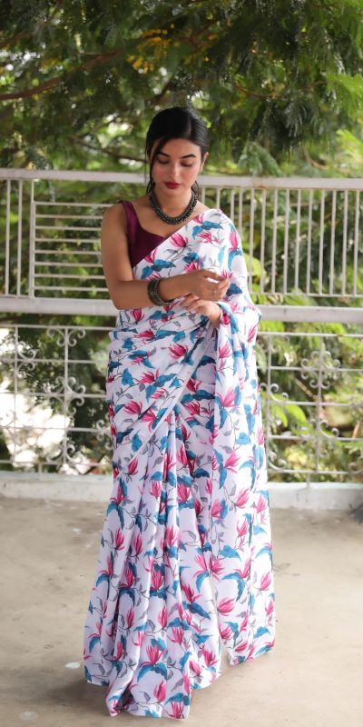 Exquisite White Color Devsena Soft Silk Saree Digital Print Saree