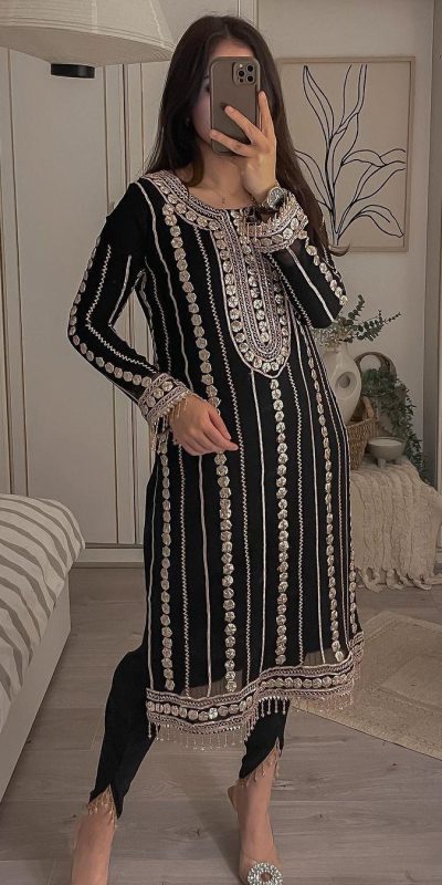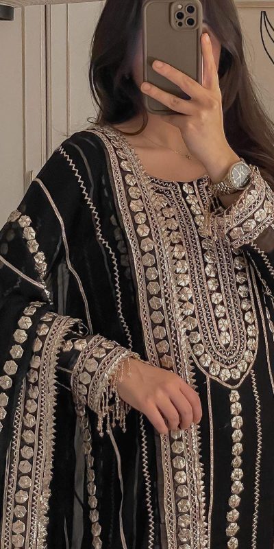 Fancy Black Color Georgette Embroidery Foil Work Salwar Suit