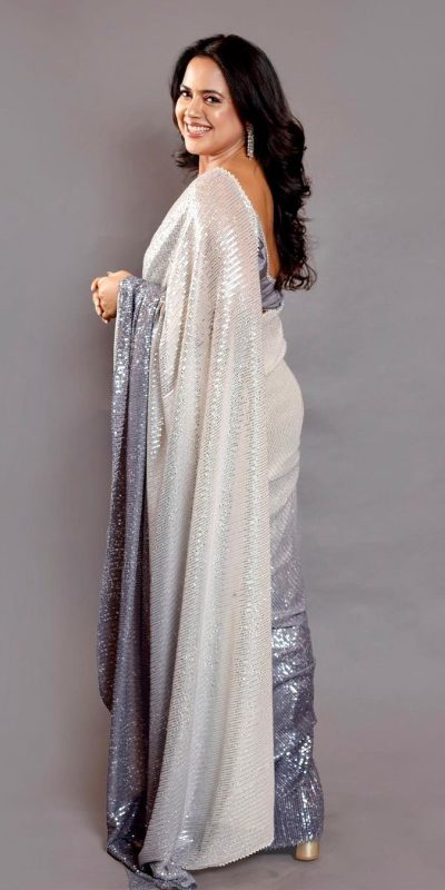 Fancy Grey Georgette Digital Printed Sequence Embroidery Saree