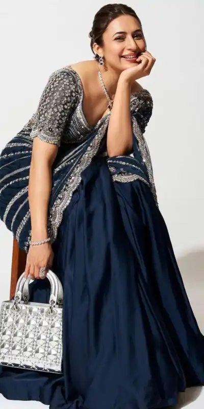 Navy Blue Vichitra Embroidery Lehenga Saree