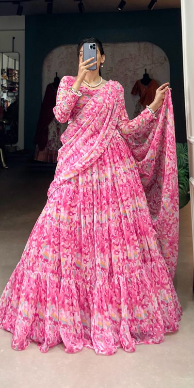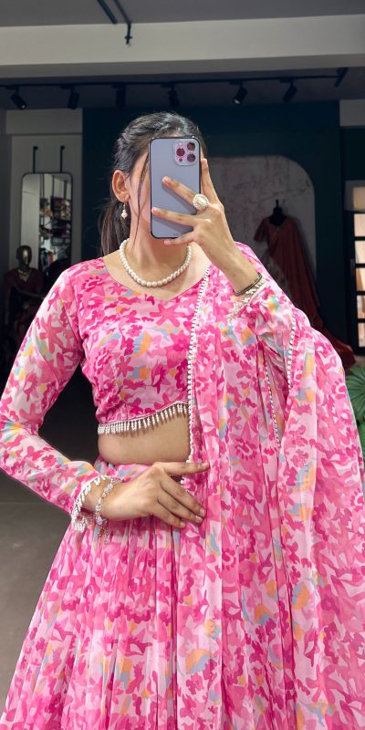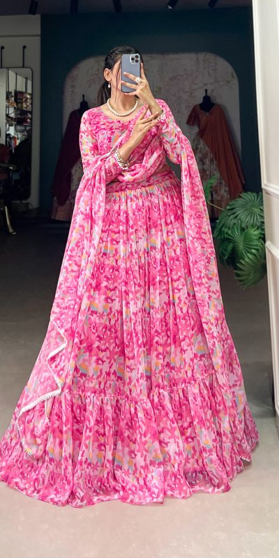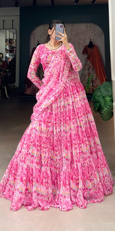 Fancy Pink Color Georgette Printed wrapped With Canvas Lehenga Choli