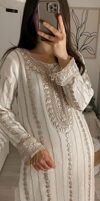 Fancy White Color Georgette Embroidery Foil Work Salwar Suit