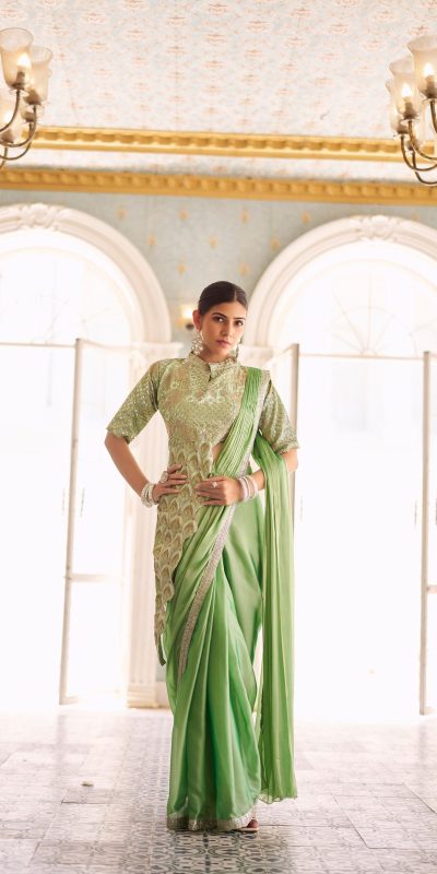 ST 1103 Pista Color Chinon Embroidery Work Lace Border Saree Casual, Wedding, Festive, Events . Expected Delivery 4-6 Working Days @2099/- only