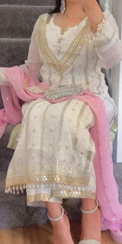 | Fabrics | Top :-Heavy Faux Georgette Fabric With Heavy Embroidery 5mm Sequence Work And Hand Moti Work. (Fully Sleeve’s)