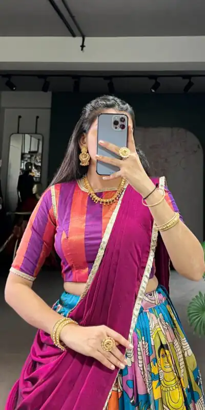 Lehenga Work : Kalamkari Print With Zari Weaving Border