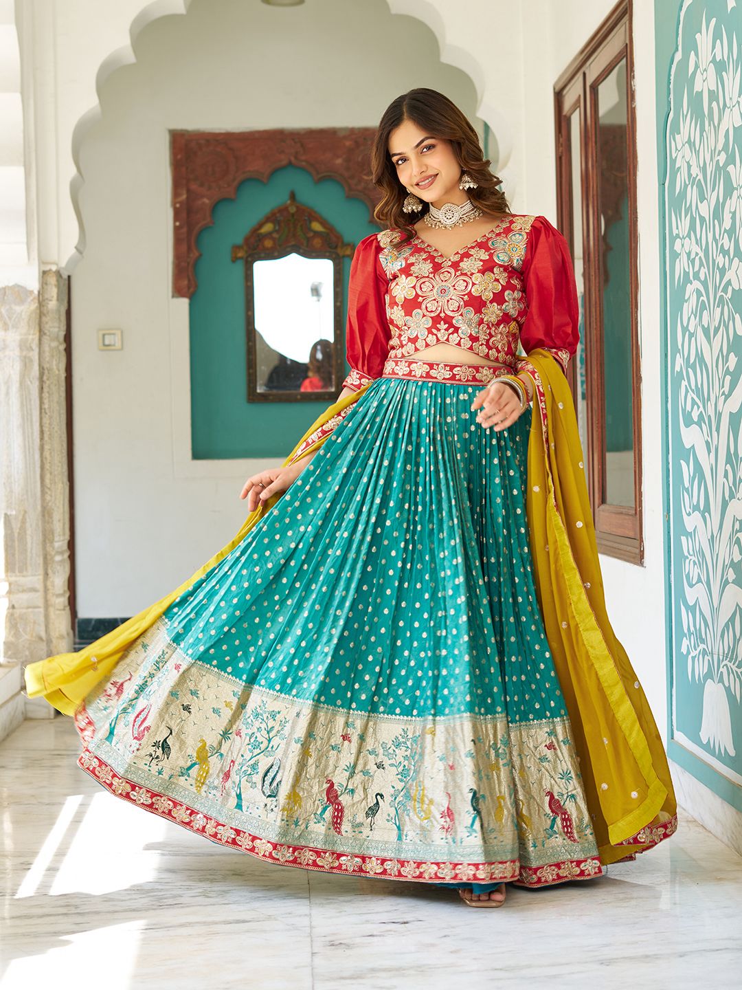 Firozi Mono Silk Embroidery Work Lehenga Choli