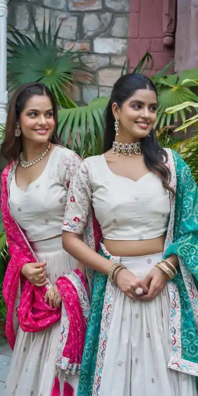 1 Lehenga :: 1 Blouse :: 1 Dupatta :: Drawstring with Zip |