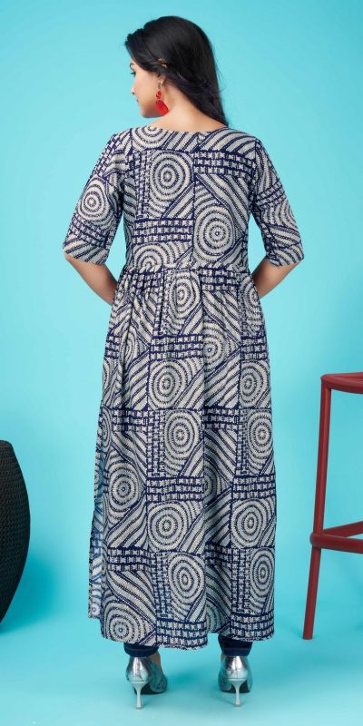 | Fabrics | Gown : Rayon Work : Foil print with dori pattern Length: 50 |