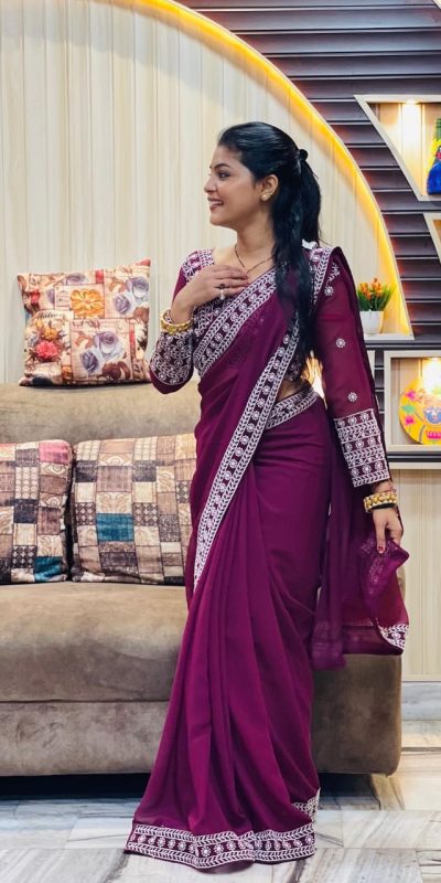 JR 593 Purple Color Georgette Embroidery Sequence Saree Casual, Wedding, Festive, Events Expected Delivery 4-6 Working Days @1599/-