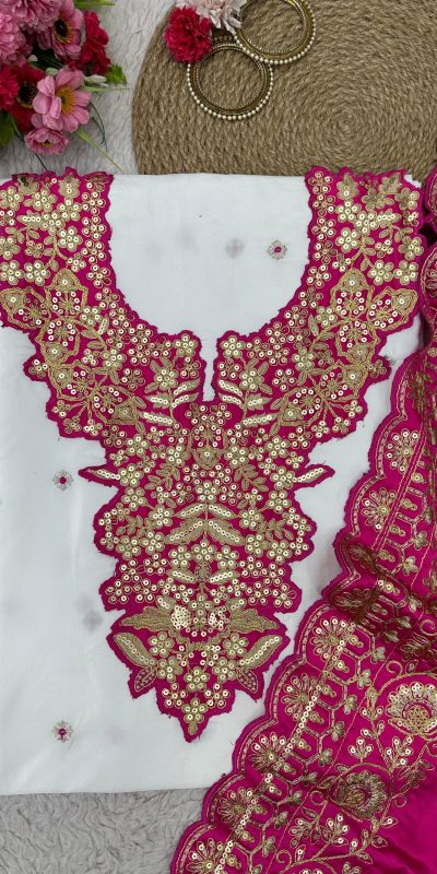 Glamorous White & Pink Color Silk Thread Sequence Salwar Suit