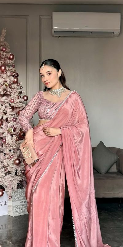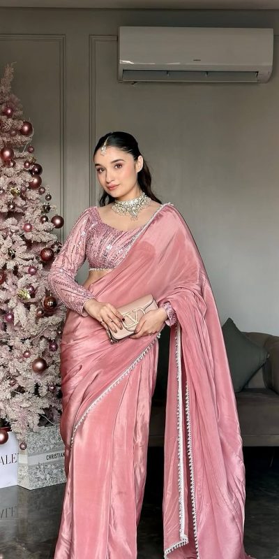 Glowing Peach Color Crepe Silk With Kody Lace Work Saree