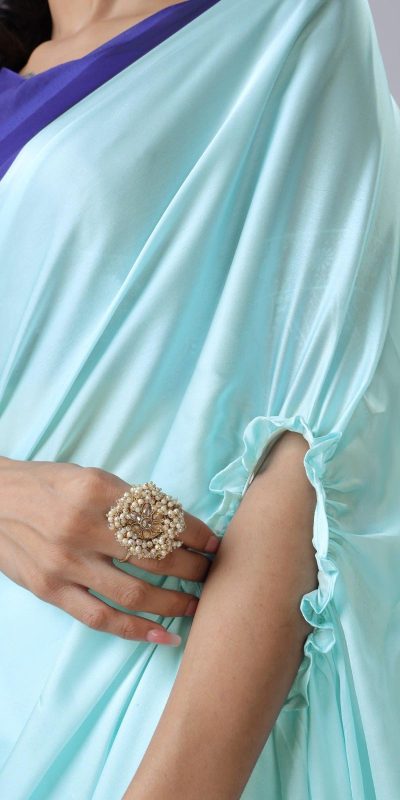 Size :- Ready To Wear Saree / Free Size Blouse Fabric :- Japan Satin Work :- Plain / Un stitched Hands-free Ready To Wear Saree |