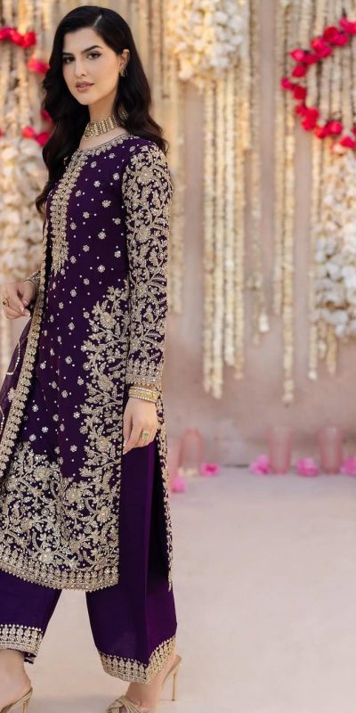 Glowing Violet Color Faux Georgette With Embroidery Sequence With Beads Work Salwar Suit
