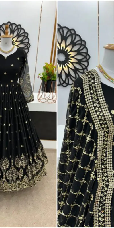 Graceful Black Color Georgette Embroidery Sequence Work Gown