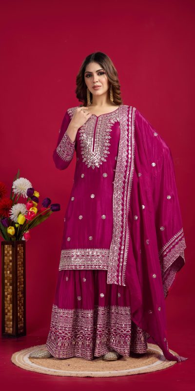 NSR-800 Pink Color Chinnon Silk With Embroidery Work Sharara Suit Wedding, Party, Festive, Events Etc.  Expected Delivery 4-6 Working Days @2149/-