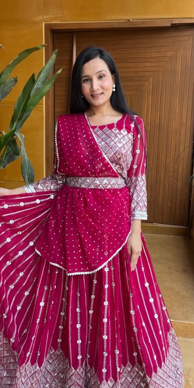 Ram 001 Rani Color Georgette Sequence Thread Work With Zari Lehenga Choli Casual, Wedding, Festive, Events Expected Delivery 4-6 Working Days @2949/-