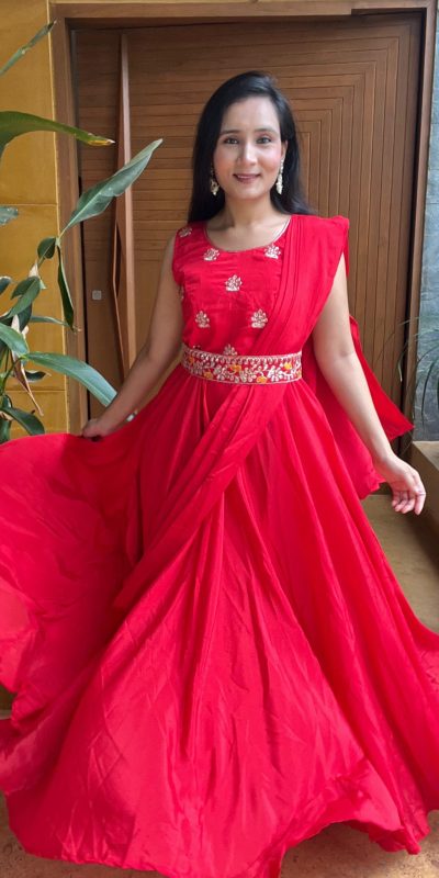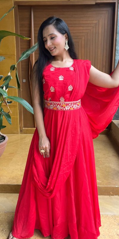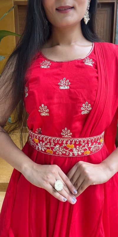 Ram 015 Red Color Chinon Embroidery Lace Work Gown Casual, Wedding, Party, Festive, Events Etc. Expected Delivery 4-6 Working Days @2049/-