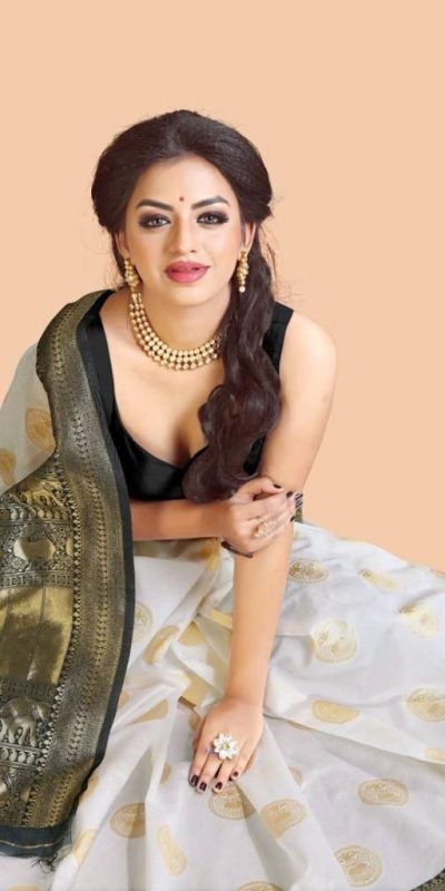 KP 5055 White & Black Color Soft Lichi Silk Jacquard Work Saree Casual, Party Wear, Wedding, Events Etc. Expected Delivery 4-6 Working Days @1499/-