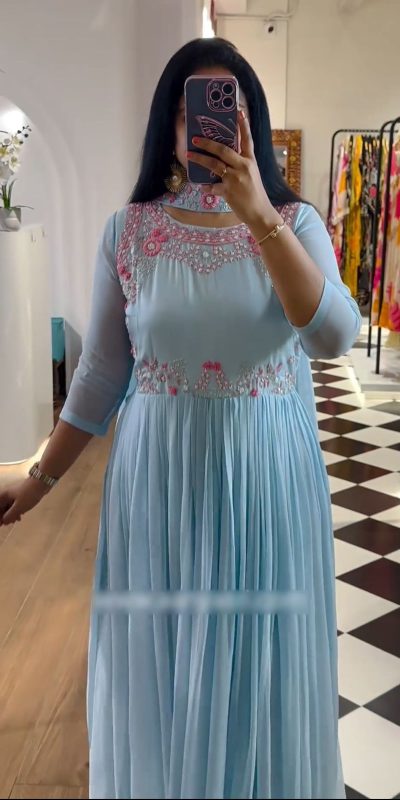PC 369 Blue Color Fox Georgette Embroidery Sequence Work Gown Casual, Party Wear, Events, Festivals Wear Etc. Expected Delivery 4-6 Working Days @1829/-
