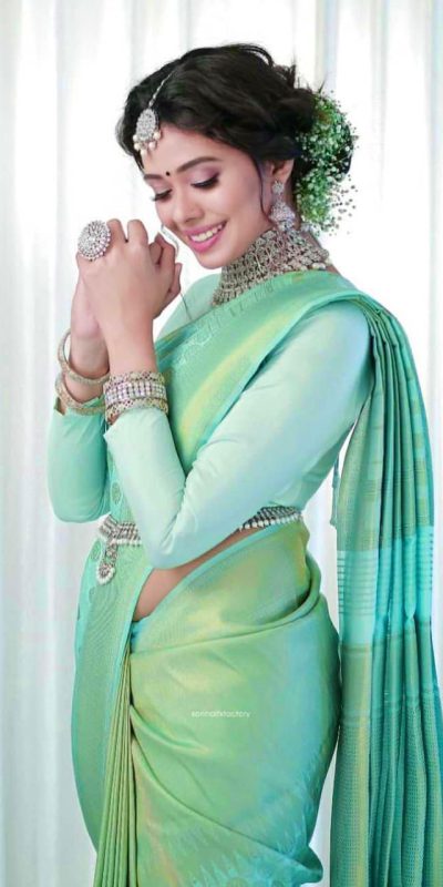 KP 3056 Light Green Color Soft Lichi Silk Jacquard On All Over Saree Casual, Party Wear, Wedding, Events Etc. Expected Delivery 4-6 Working Days @1349/-