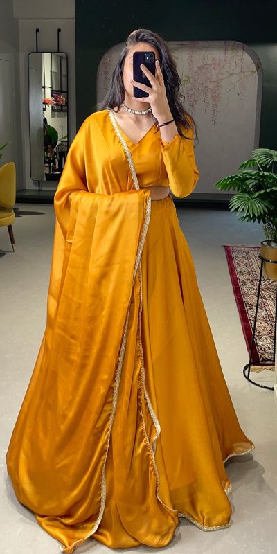 LNB 1227 Mustard Color Rangoli Silk Plain Lace Border Lehenga Choli Traditional Wear, Festive, Party, Wedding, Events etc. Expected 4-6 Working Days @1799/-