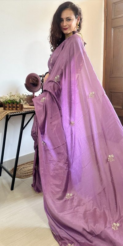 AC BEAUTY Purple Color Soft Chinnon Hand Work Flower Design Saree Casual, Wedding, Festive, Events Expected Delivery 4-6 Working Days @2449/-
