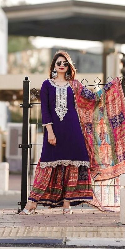 AD 165 Violet Color Chinon Silk Embroidery Work Sharara Suit Casual, Wedding, Party, Festive, Events Etc. Expected Delivery 4-6 Working Days @1999/-