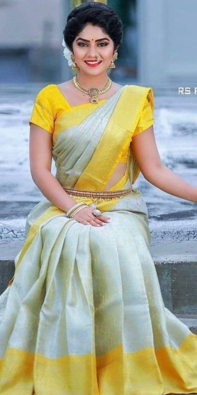 KP 3083 White & Yellow Color Soft Lichi Silk Jacquard On All Over Saree Casual, Party Wear, Wedding, Events Etc. Expected Delivery 4-6 Working Days @1449/-