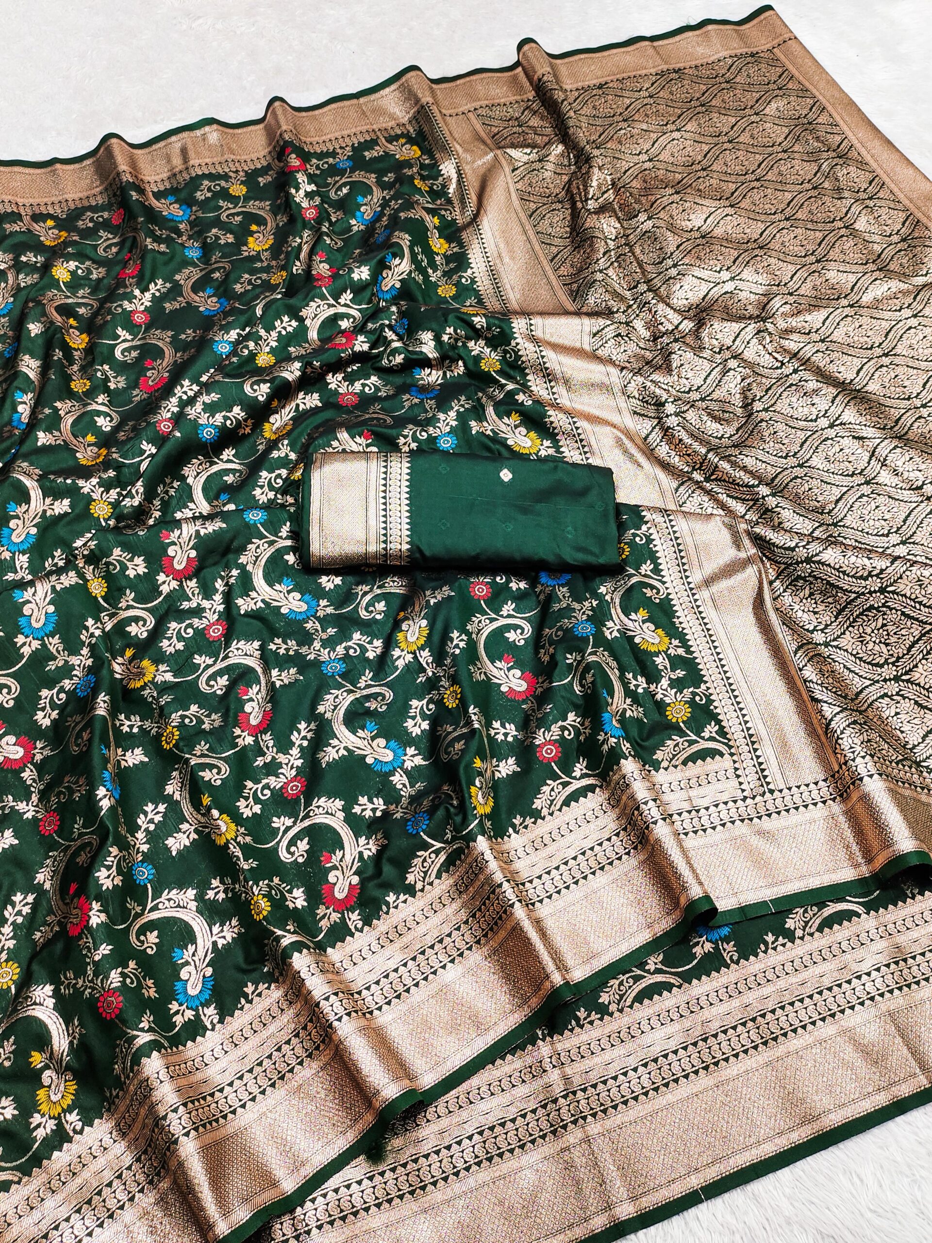 Saree :- Soft Banarasi silk  with  design all over the  & Meenakari weaving Rich pallu with Meenakari weaving Rich border.