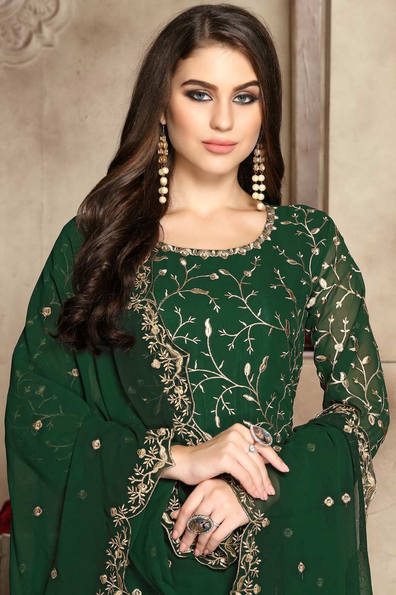 Green Georgette Multi Thread Zari Anarkali Suit