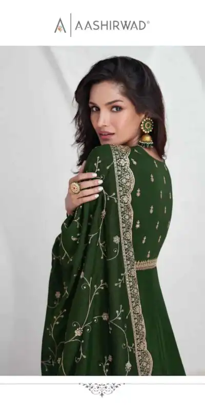 Green Vichitra Embroidery Lace Work Salwar Suit