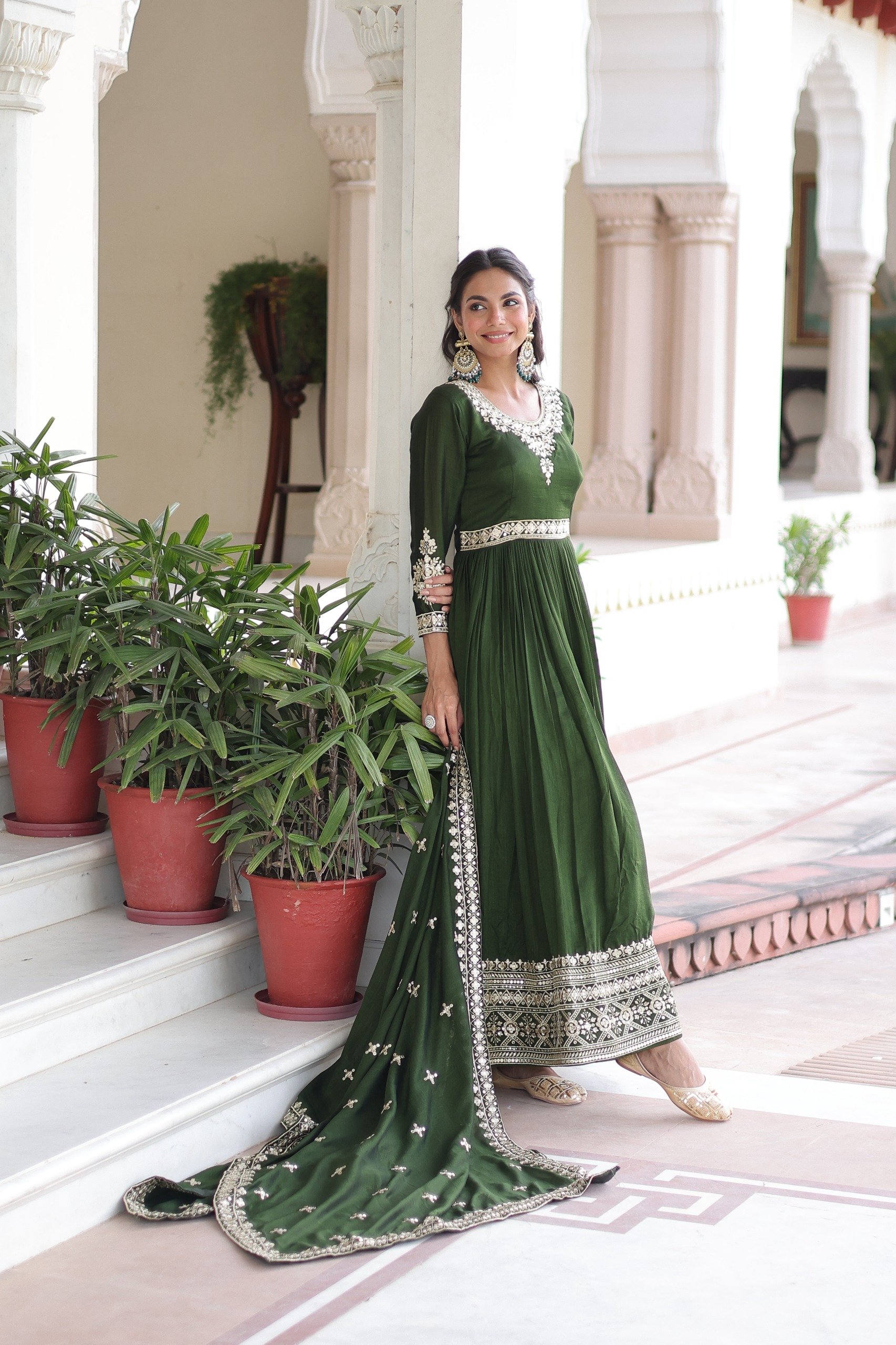 Green Vichitra Silk Embroidery Sequins Work Gown
