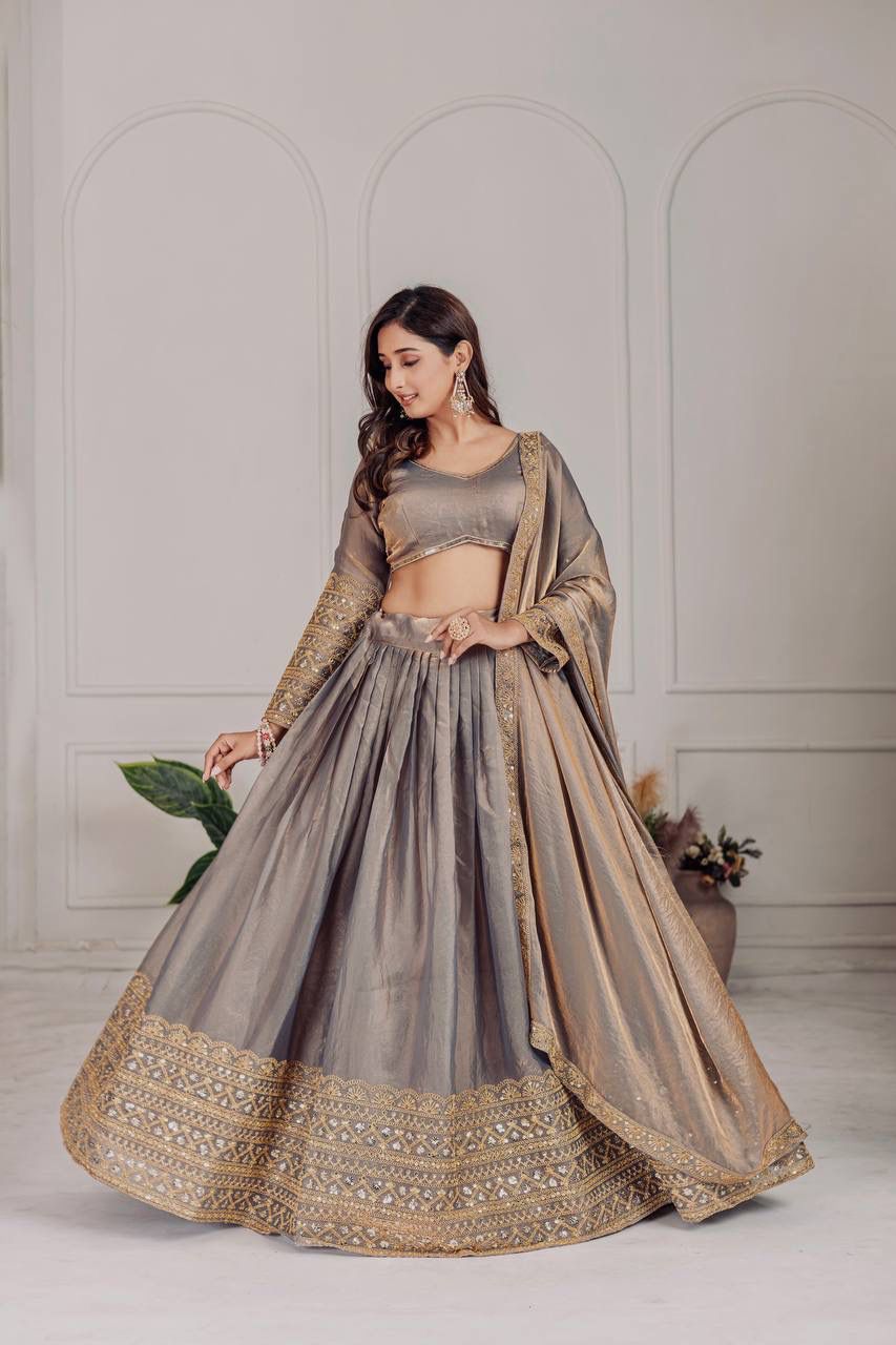 Grey Fendi Embroidery Sequins Work Lehenga Choli
