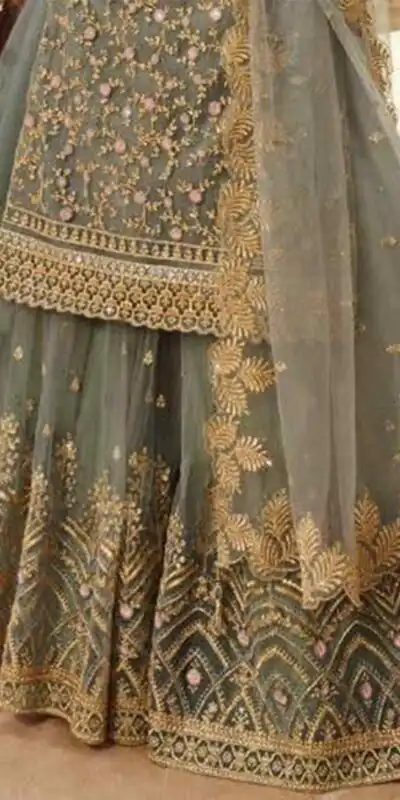 Grey Soft Net With Embroidery Work Salwar Suit