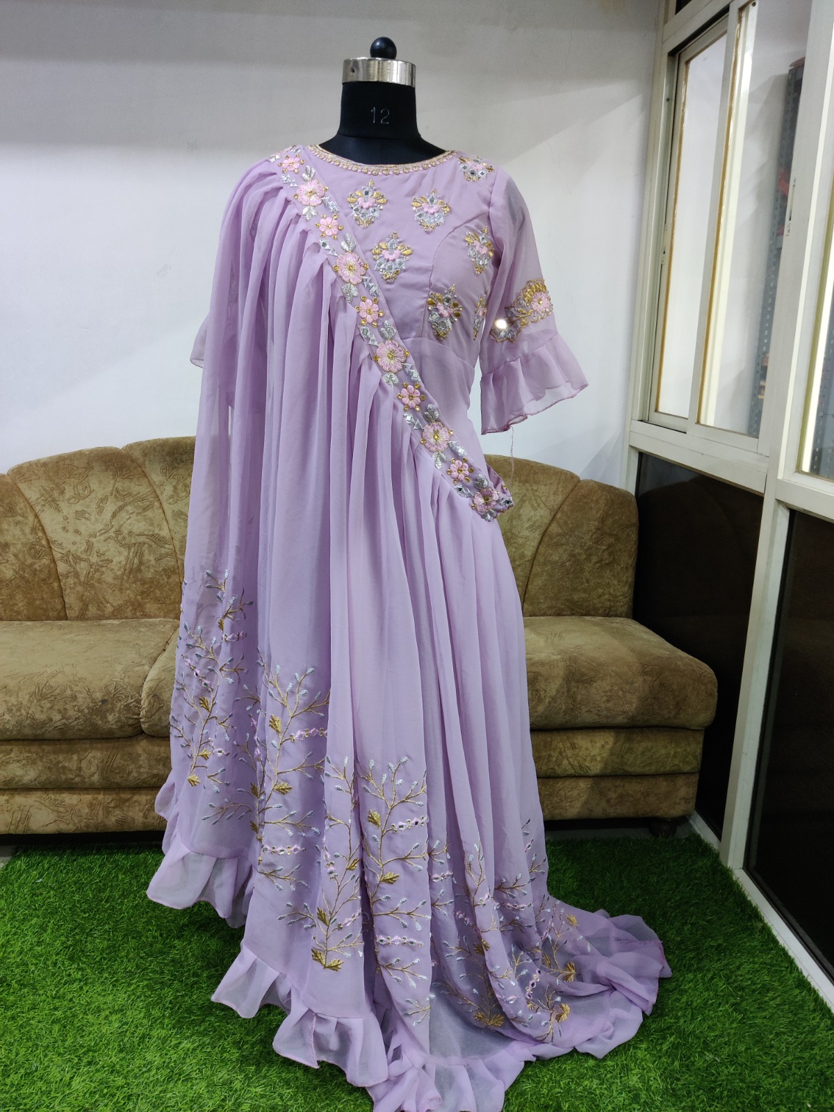 Work: Embroidered Work With Fancy Stitching And Ruffle Work And Real Mirror Hand Work