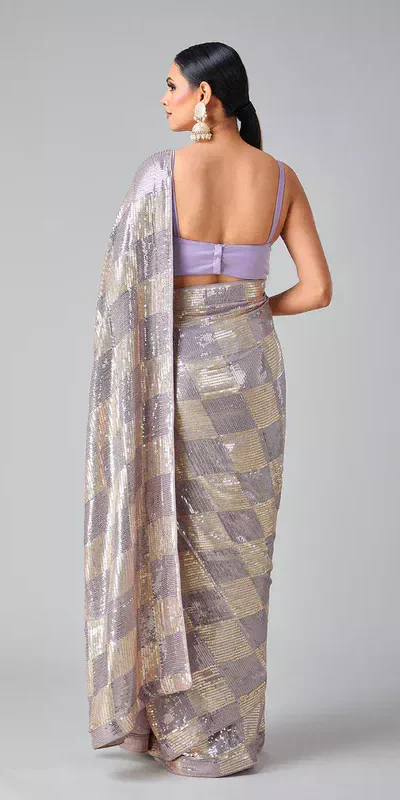 Dual Sequins Of 3mm & 5mm Sequins Work In Saree