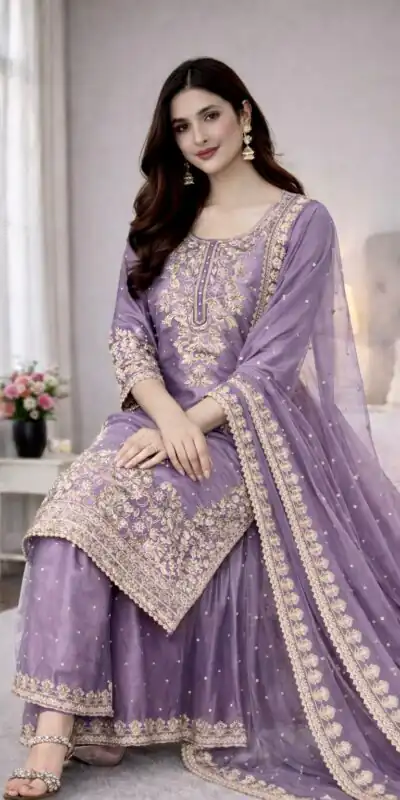 Lavender Organza Silk Embroidery Work Salwar Suit