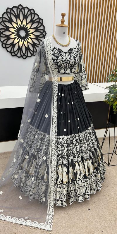 ZF 366 Black Color Faux Georgette Embroidery Work Lehenga Choli Wedding, Party, Events Etc. Expected Delivery 4-6 Working Days 2049/-