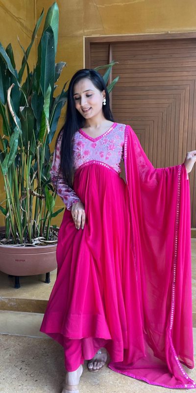 Ram 013 Pink Color Fox Georgette Position Print Work Gown Casual, Wedding, Party, Festive, Events Etc. Expected Delivery 4-6 Working Days @2049/-