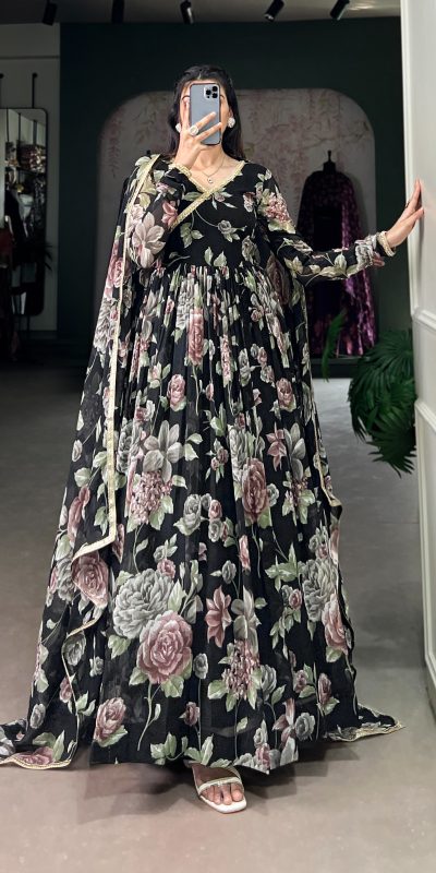YNF 5103 Black Color Marble Floral Print Lace Touch Up Gown Casual, Wedding, Party, Festive, Events Etc. Expected Delivery 4-6 Working Days @1799/-